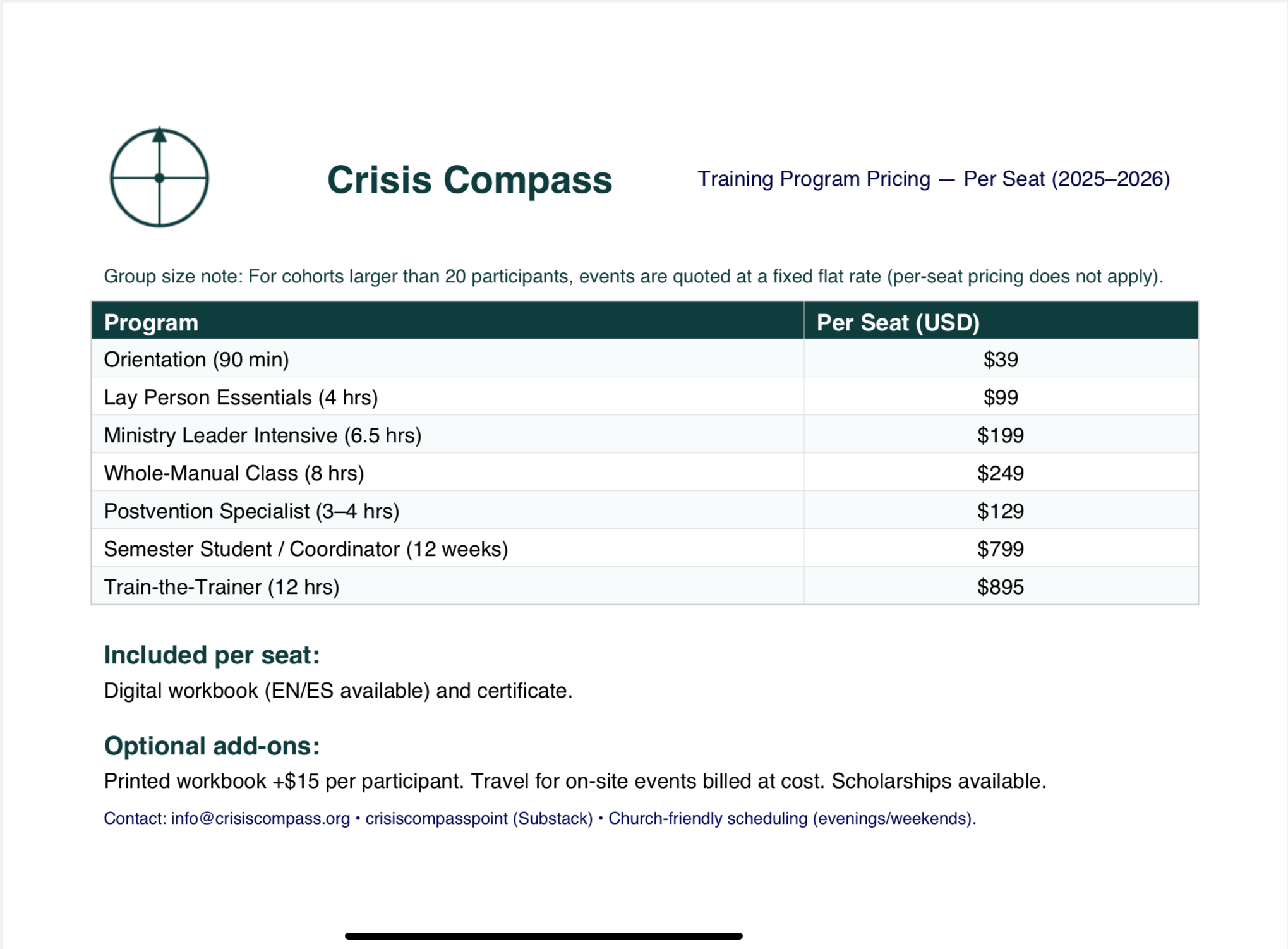 Empower your congregation with the tools and knowledge they need to provide effective crisis support. Contact us today to learn more about our programs and how they can benefit your community.